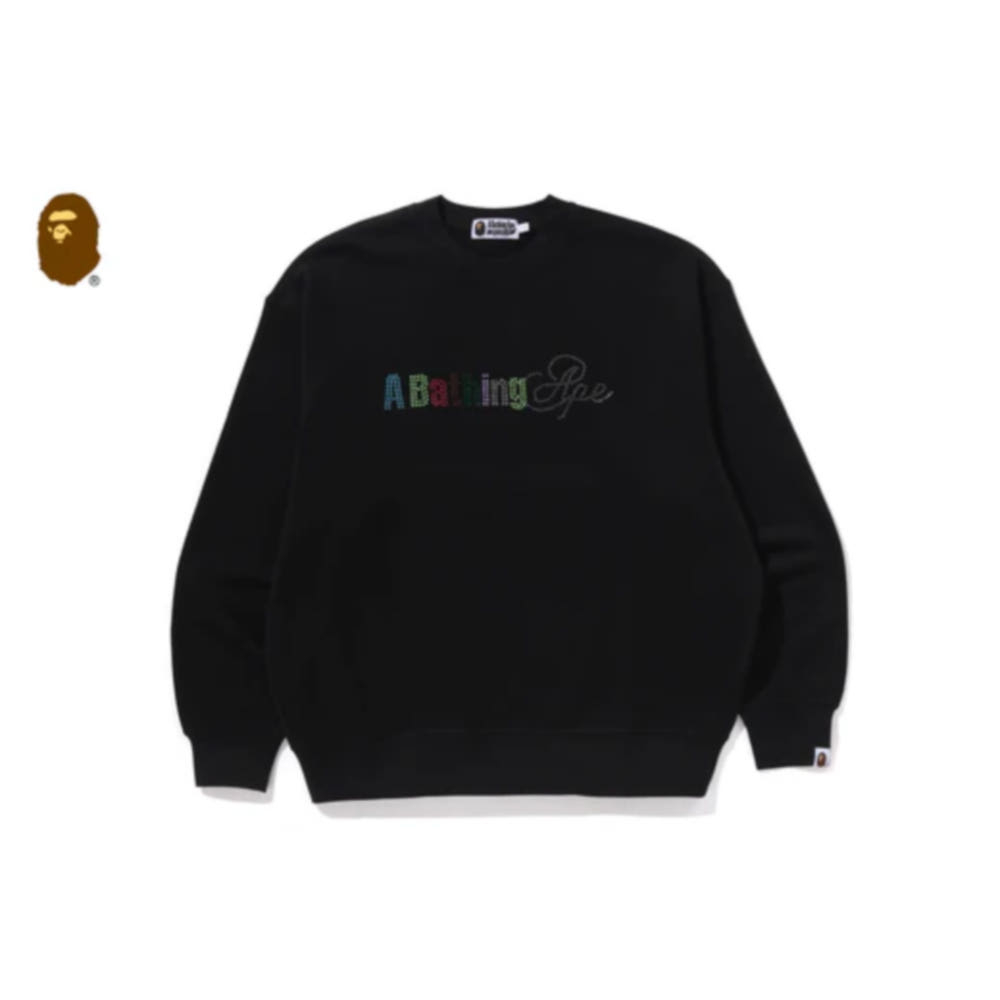 베이프 라인스톤 로고 릴렉스핏 크루넥 스웻셔츠 블랙 1L30113309