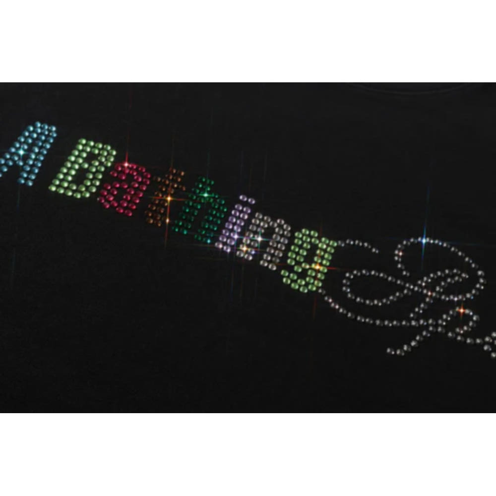 베이프 라인스톤 로고 릴렉스핏 크루넥 스웻셔츠 블랙 1L30113309 > 패션의류
