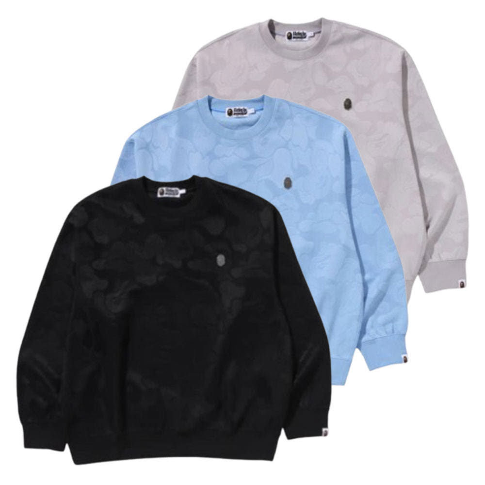 베이프 솔리드 카모 자카드 원 포인트 릴렉스핏 크루넥 스웻셔츠 3컬러 1L30113305