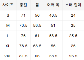 사이즈는 측정 방법에 따라 기재된 치수와 약간의 차이가 있을 수 있습니다.