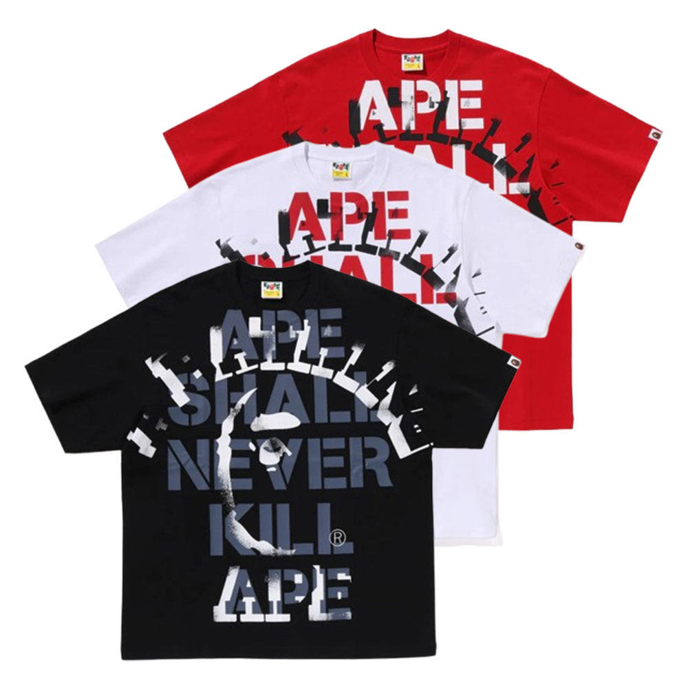 베이프 스프레이 프린트 컬리지 릴렉스 핏 반팔 티셔츠 3컬러 1L30110329