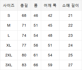 사이즈는 측정 방법에 따라 기재된 치수와 약간의 차이가 있을 수 있습니다.