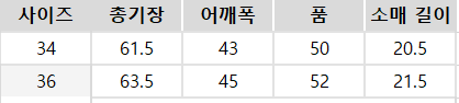 사이즈는 측정 방법에 따라 기재된 치수와 약간의 차이가 있을 수 있습니다.