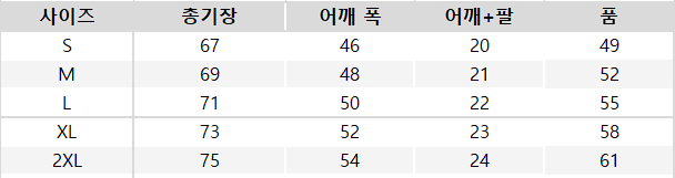 사이즈는 측정 방법에 따라 기재된 치수와 약간의 차이가 있을 수 있습니다.