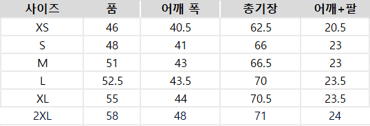 사이즈는 측정 방법에 따라 기재된 치수와 약간의 차이가 있을 수 있습니다.