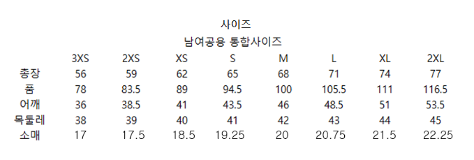 사이즈는 측정 방법에 따라 기재된 치수와 약간의 차이가 있을 수 있습니다.