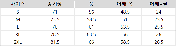 사이즈는 측정 방법에 따라 기재된 치수와 약간의 차이가 있을 수 있습니다.