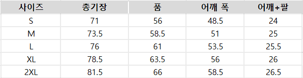 사이즈는 측정 방법에 따라 기재된 치수와 약간의 차이가 있을 수 있습니다.