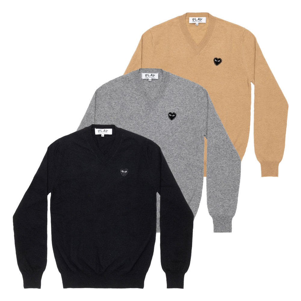 꼼데가르송 PLAY CDG 브이넥 니트 라인스톤 블랙와펜 남녀공용 3컬러 AX-N804-051 > 패션의류
