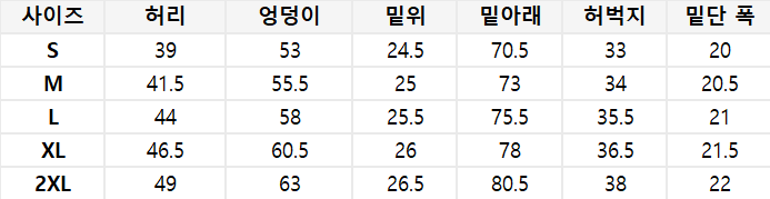 사이즈는 측정 방법에 따라 기재된 치수와 약간의 차이가 있을 수 있습니다.