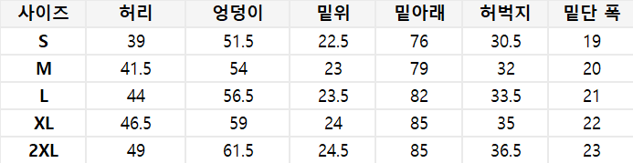 사이즈는 측정 방법에 따라 기재된 치수와 약간의 차이가 있을 수 있습니다.