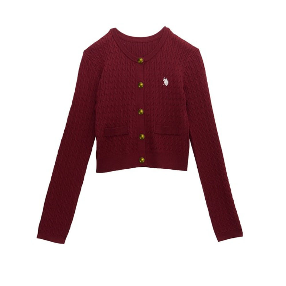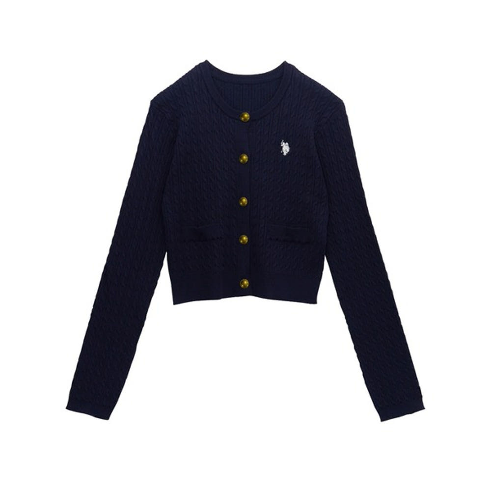 U.S. POLO ASSN. 유에스폴로에센 골드 버튼 자수 케이블 니트 가디건 4컬러 720650