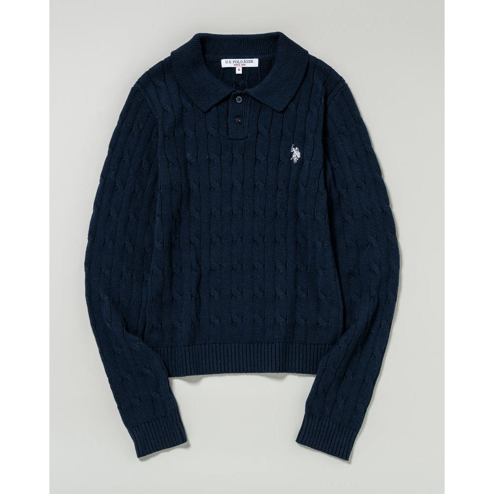 U.S. POLO ASSN. 유에스폴로에센 더블 호스맨 자수 케이블 폴로 니트 3컬러 PLL53470