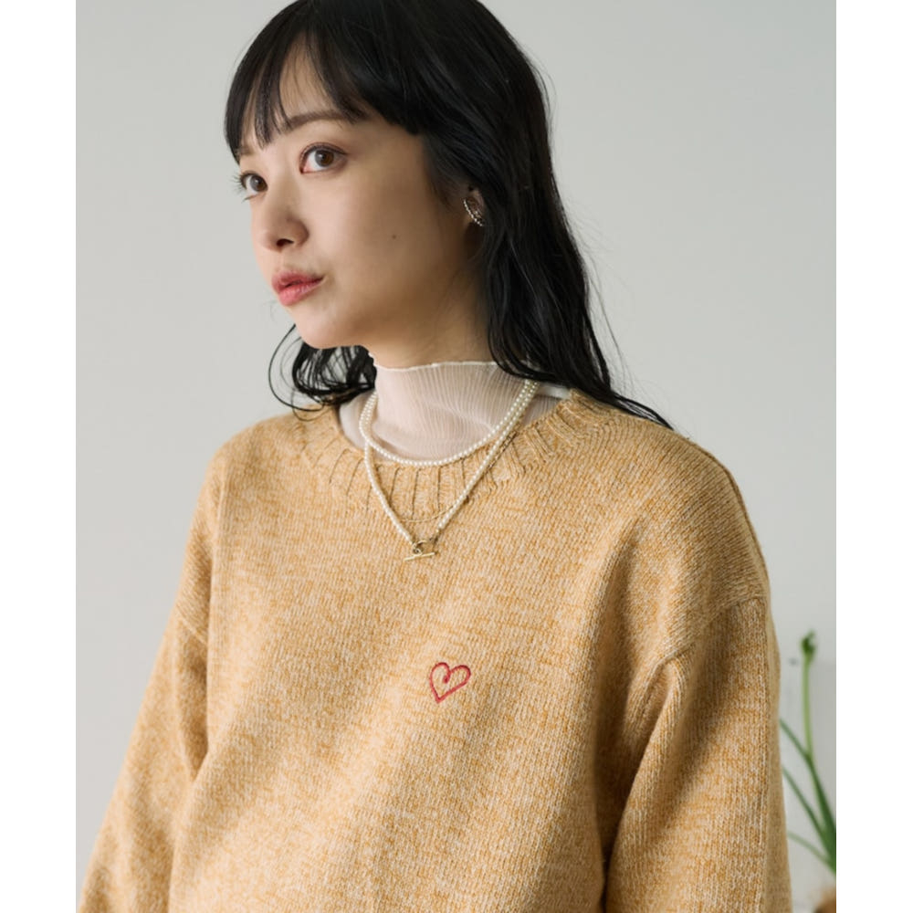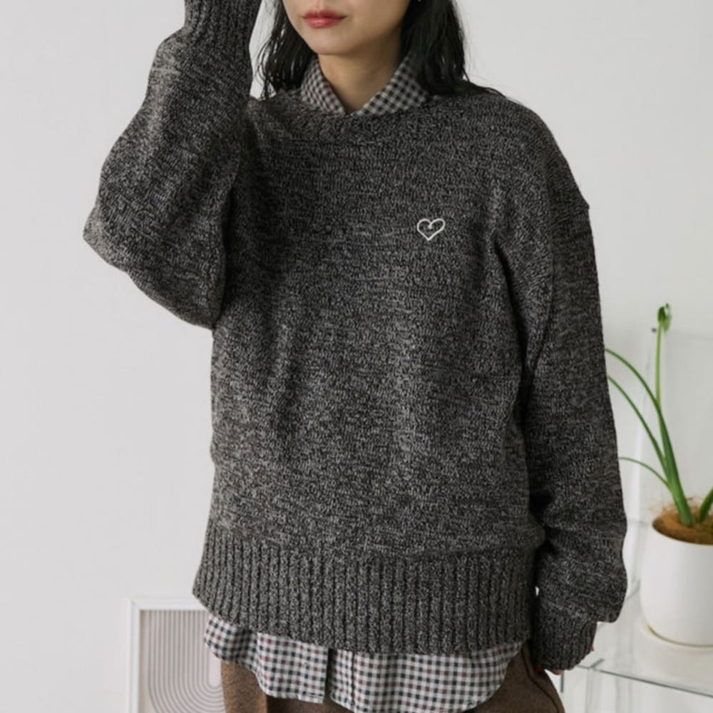 프릭스스토어 원포인트 하트자수 폭스혼방 니트 풀오버 3컬러 1132248902860