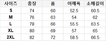 사이즈는 측정 방법에 따라 기재된 치수와 약간의 차이가 있을 수 있습니다.
