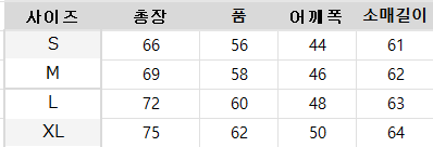 사이즈는 측정 방법에 따라 기재된 치수와 약간의 차이가 있을 수 있습니다.