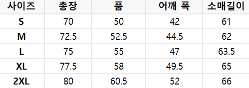 사이즈는 측정 방법에 따라 기재된 치수와 약간의 차이가 있을 수 있습니다.