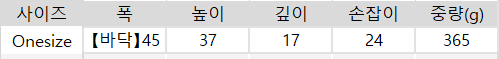 사이즈는 측정 방법에 따라 기재된 치수와 약간의 차이가 있을 수 있습니다.