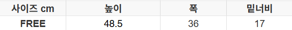 사이즈는 측정 방법에 따라 기재된 치수와 약간의 차이가 있을 수 있습니다.