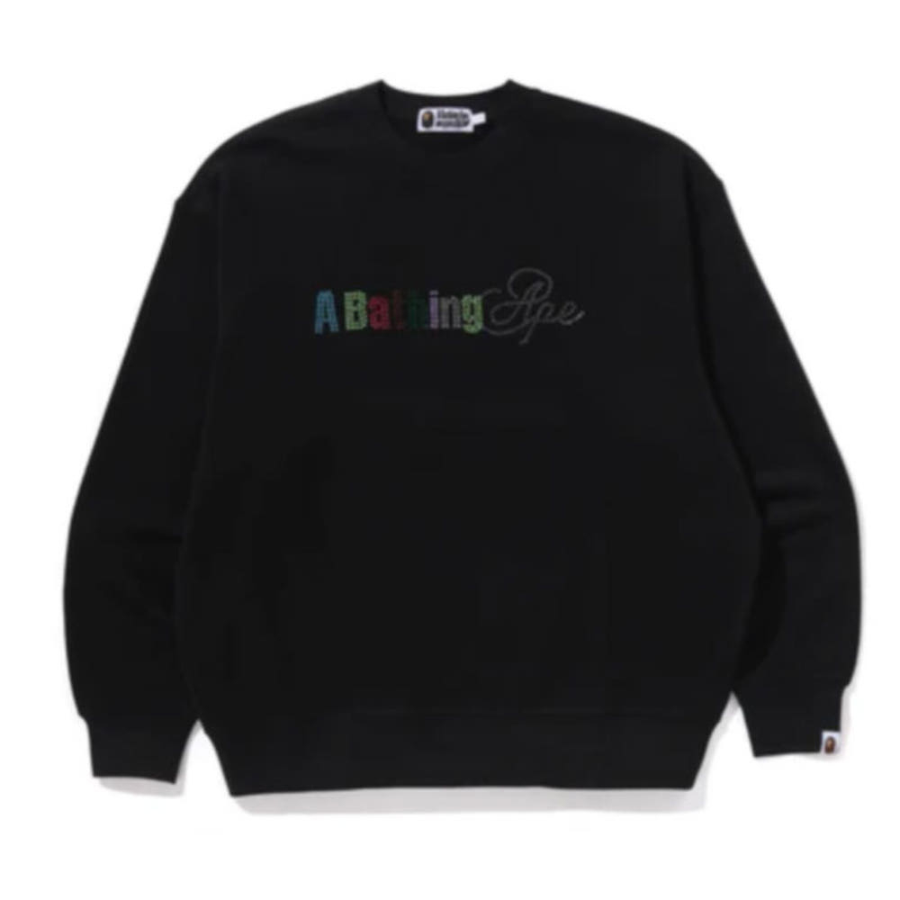 베이프 라인스톤 로고 릴렉스핏 크루넥 스웻셔츠 블랙 1L30113309