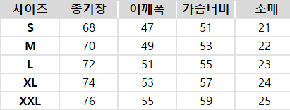 사이즈는 측정 방법에 따라 기재된 치수와 약간의 차이가 있을 수 있습니다.