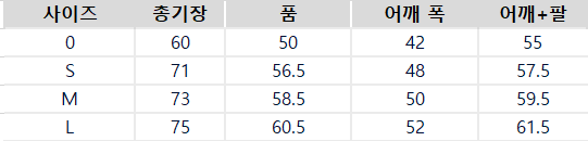 사이즈는 측정 방법에 따라 기재된 치수와 약간의 차이가 있을 수 있습니다.