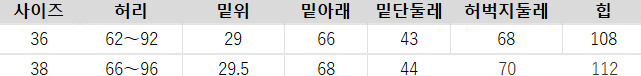 사이즈는 측정 방법에 따라 기재된 치수와 약간의 차이가 있을 수 있습니다.
