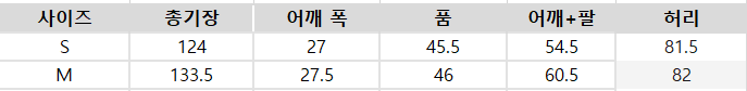 사이즈는 측정 방법에 따라 기재된 치수와 약간의 차이가 있을 수 있습니다.