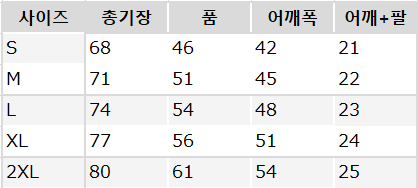 사이즈는 측정 방법에 따라 기재된 치수와 약간의 차이가 있을 수 있습니다.