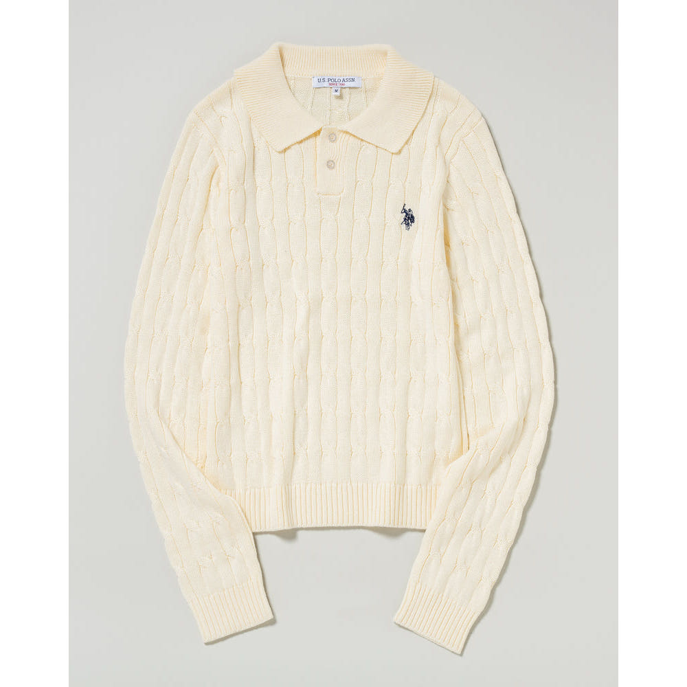 U.S. POLO ASSN. 유에스폴로에센 더블 호스맨 자수 케이블 폴로 니트 3컬러 PLL53470