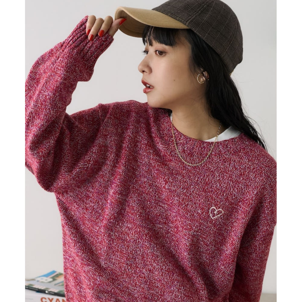 프릭스스토어 원포인트 하트자수 폭스혼방 니트 풀오버 3컬러 1132248902860