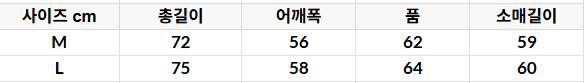 사이즈는 측정 방법에 따라 기재된 치수와 약간의 차이가 있을 수 있습니다.