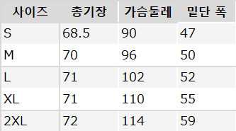 사이즈는 측정 방법에 따라 기재된 치수와 약간의 차이가 있을 수 있습니다.