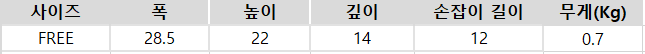 사이즈는 측정 방법에 따라 기재된 치수와 약간의 차이가 있을 수 있습니다.