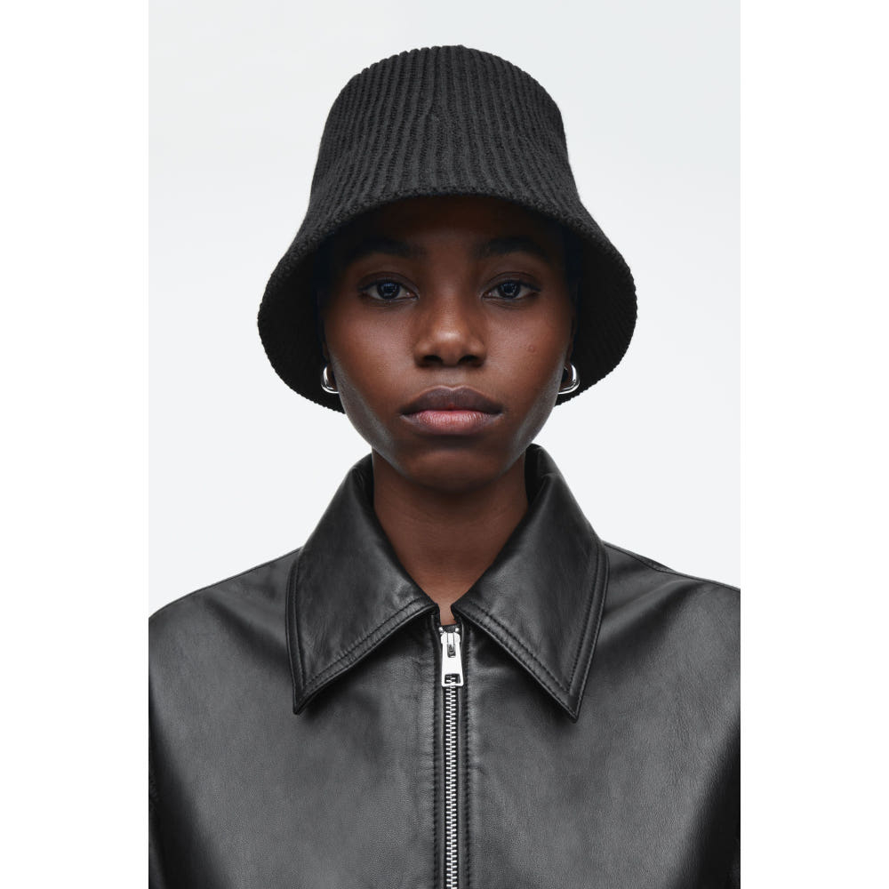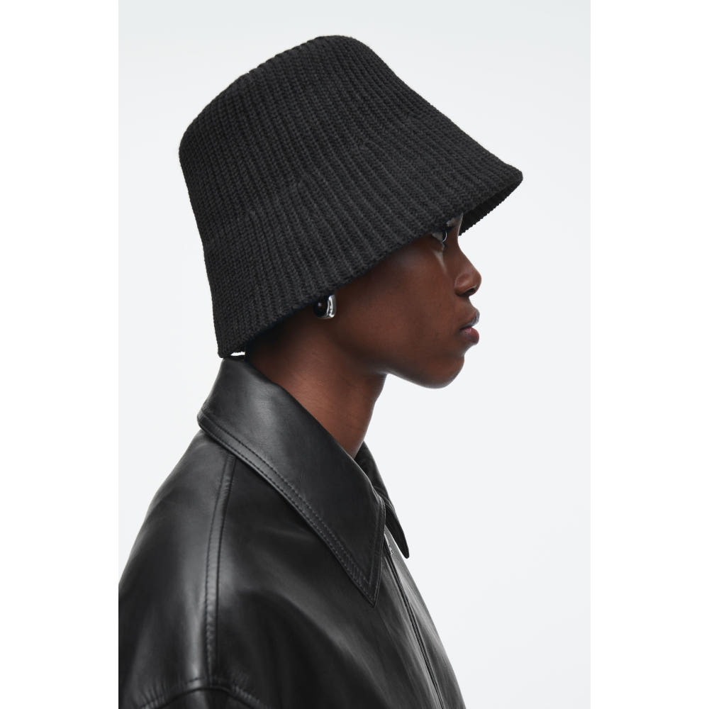 코스 COS 리브 뜨개질 울 블렌드 버킷햇 블랙 1277130001